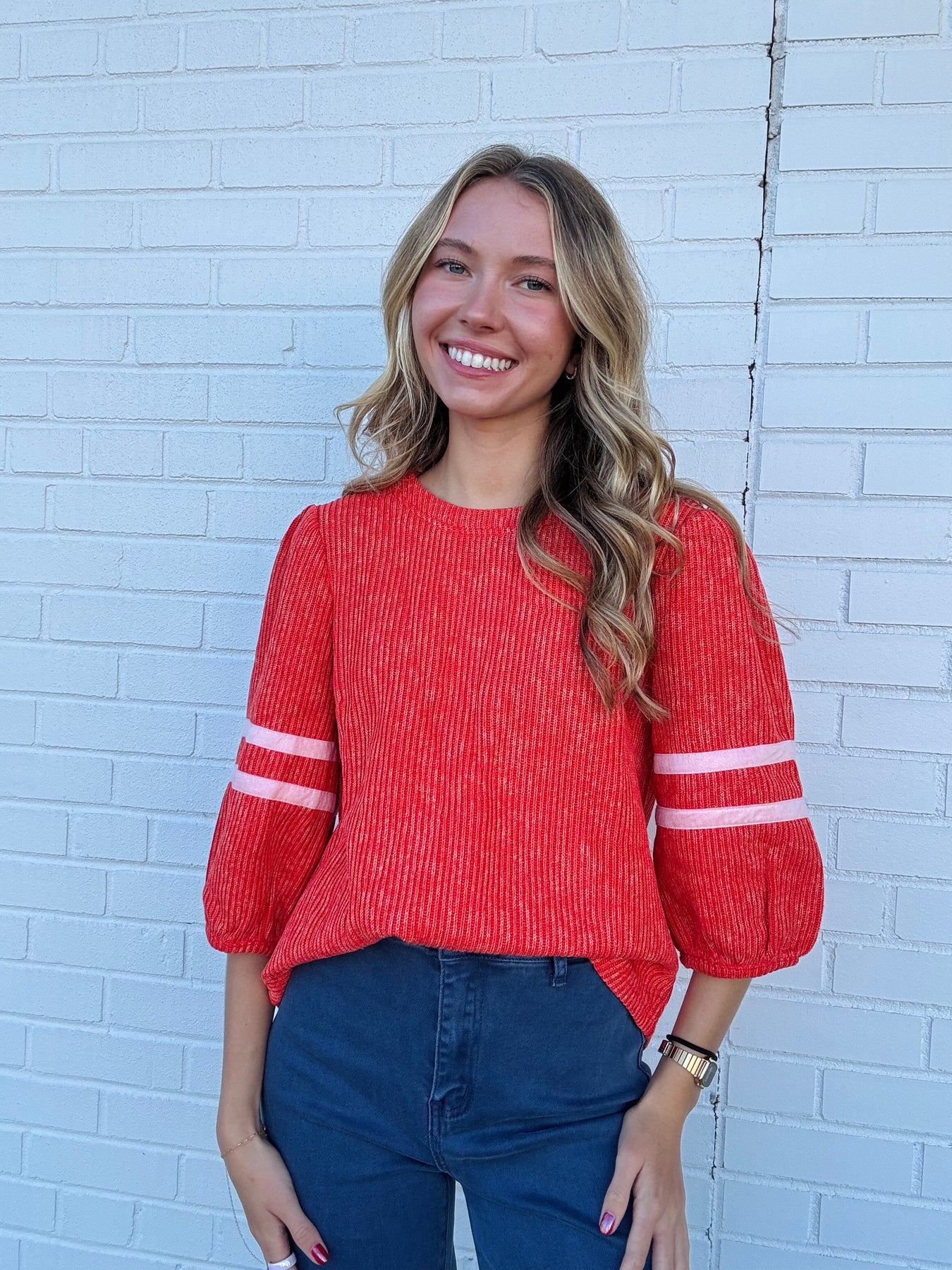 Dress this top up with a cute skirt or some light colored pants, add gold jewelry and a bag! Pair it with some jeans and booties!!