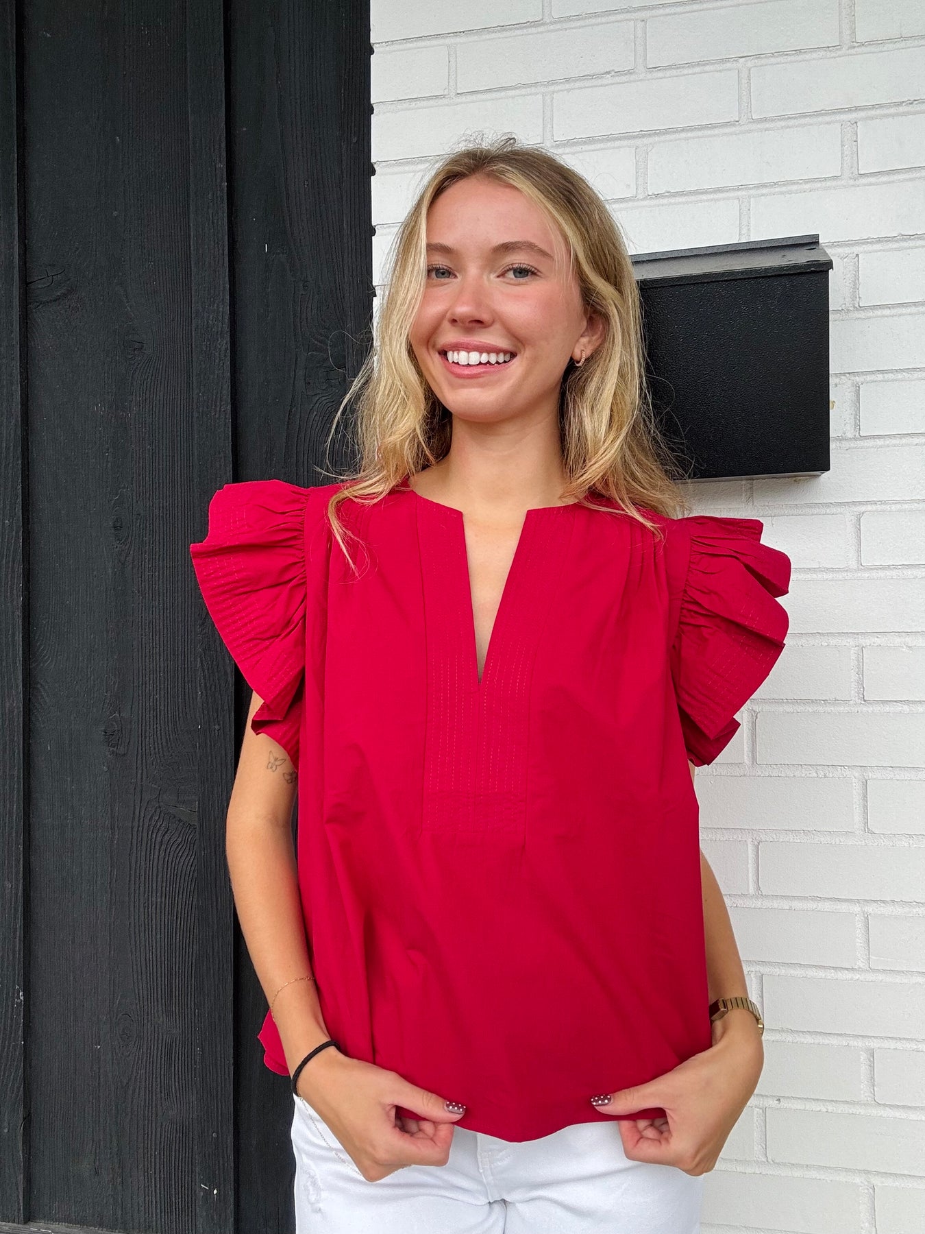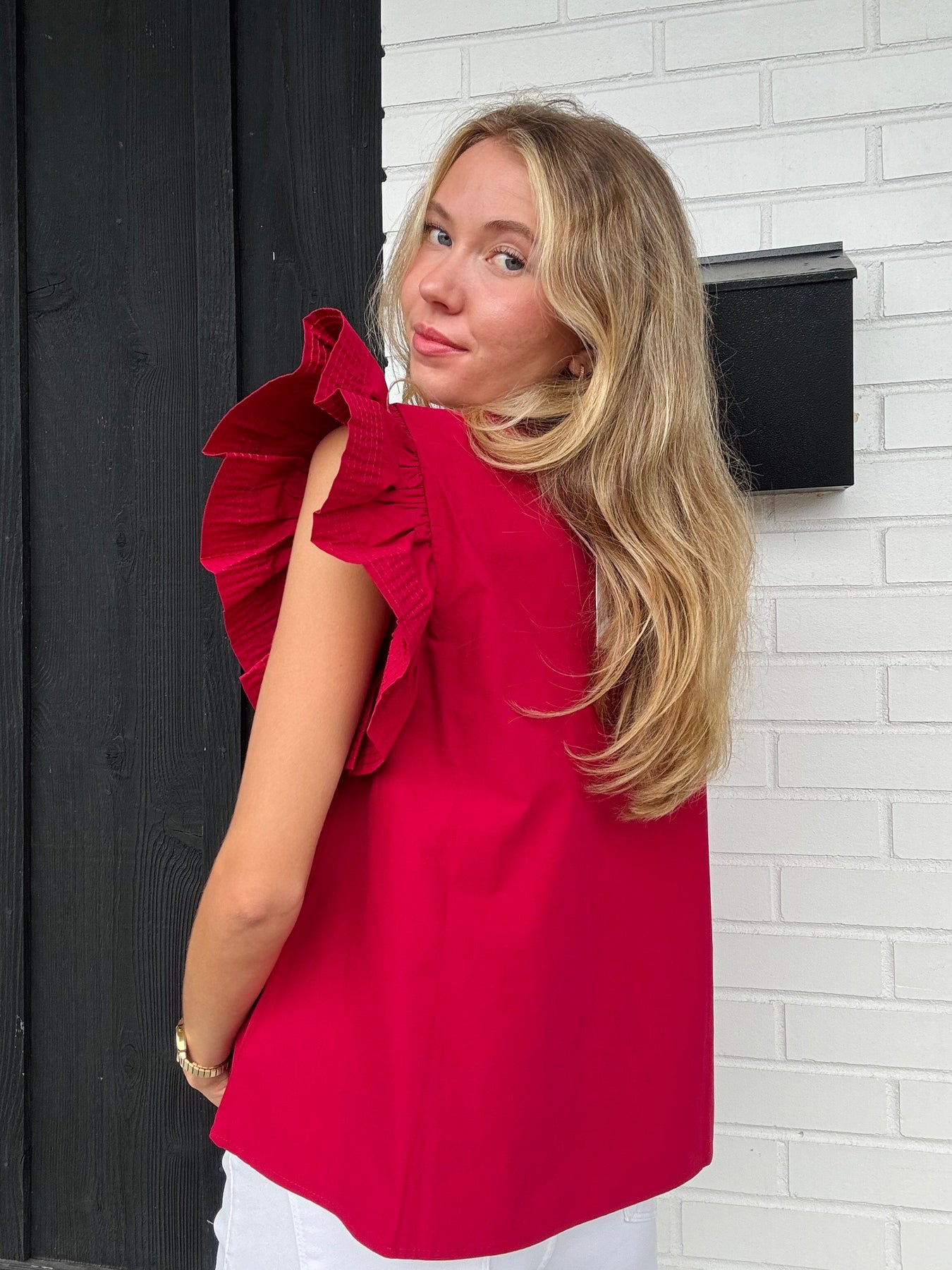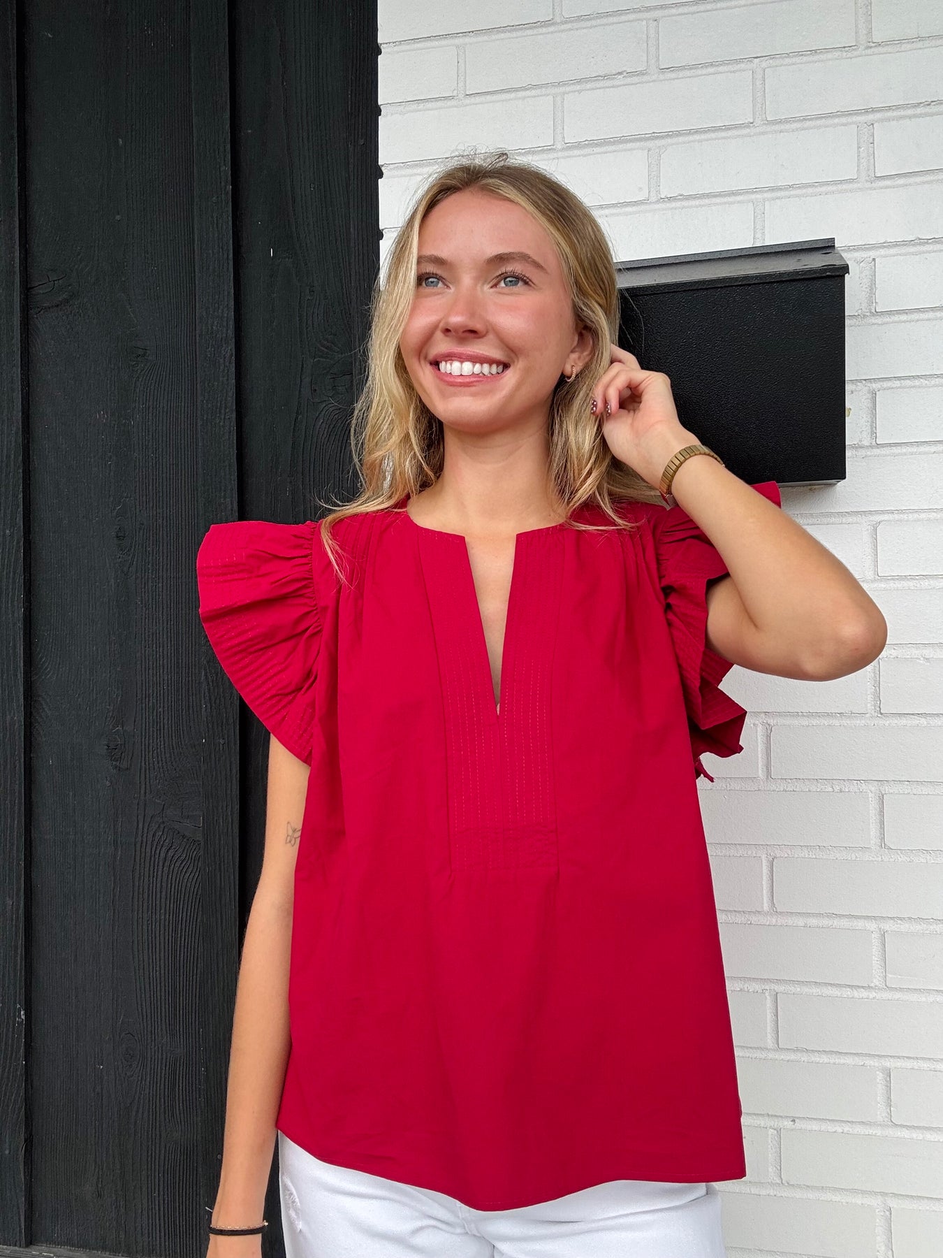 -ruffled design on sleeve